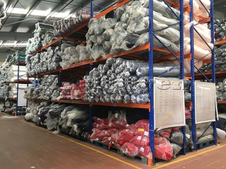 Giá kệ vải cuộn tại kho các công ty may mặc