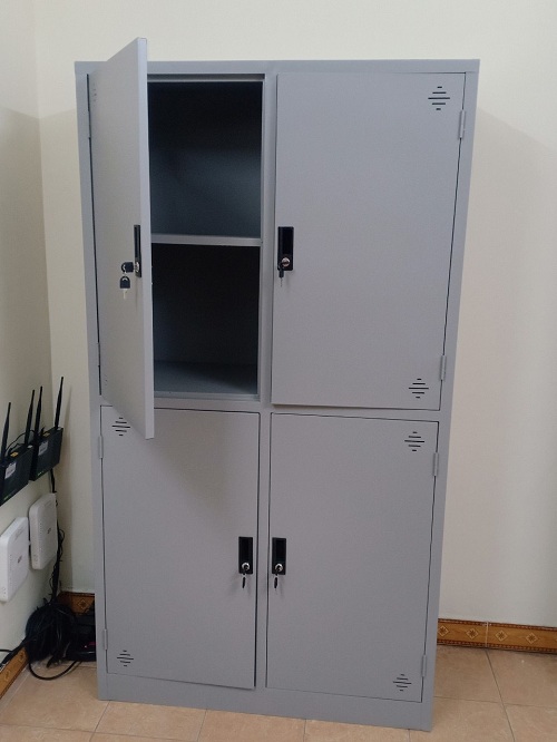 - Tủ có 4 cánh kín, gồm 8 ngăn trong, vật liệu tôn sơn tĩnh điện toàn phần
